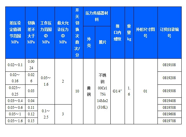 520/7DDZ双触点差压开关采用波纹管式的传感器,可用于中性气体、液体介质,空气、气体、水、水蒸汽、制冷剂、油等。520/7DDZ双触点差压开关的设定值可调,调节范围0.02~1.6MPa,工作压力范围0.05~2.5MPa。