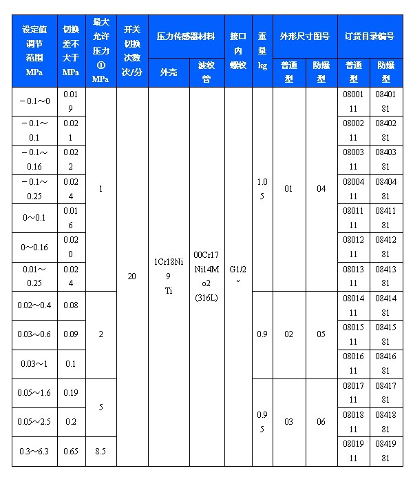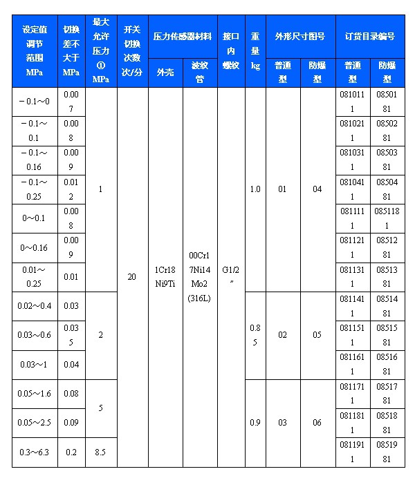 511/7Dtaptap官方帐号采用波纹管式的传感器,可用于腐蚀性气体和液体介质。511/7Dtaptap官方帐号的设定值可调,调节范围-0.1~6.3MPa。
