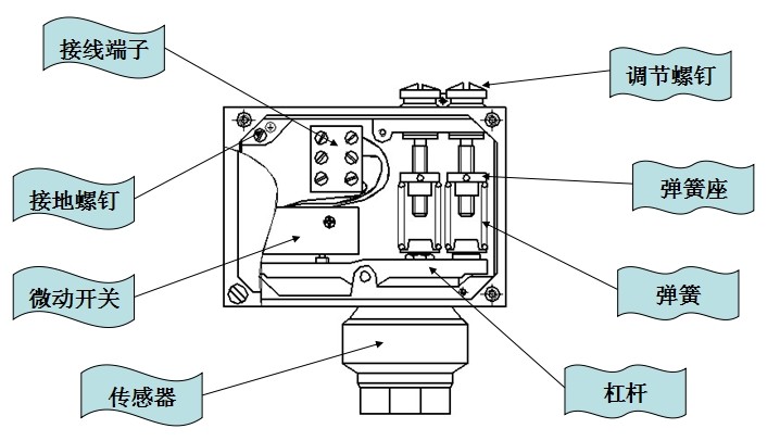今天给大家展示下压力开关的结构示意图,了解一下压力开关的内部构造,只有了解了才能更好的运用好它。就拿502/7D压力开关为例