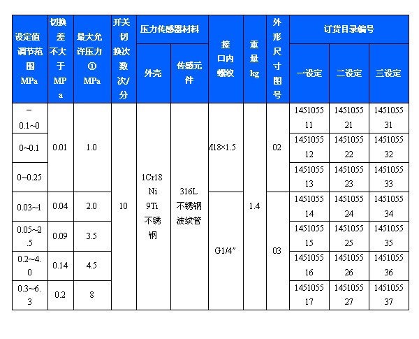 简介:500/6D多值压力开关可用于腐蚀性气体,液体等介质,设定值调节范围-0.1~6.3MPa。特点500/6D多值压力开关可用于真空:1~3组微动开关的切换值可分别设定。主要技术性能:规格: