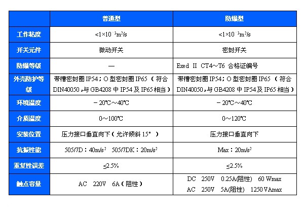 505/7DK压力开关采用无泄漏活塞式的传感器,可用于含油雾的压缩空气及其他对压力传感器材料无腐蚀作用的含油雾气体和液压油、水油乳浊液及润滑性能良好的中性液体介质。505/7DK压力开关的设定值可调,其调节范围0.3 ~ 40MPa。