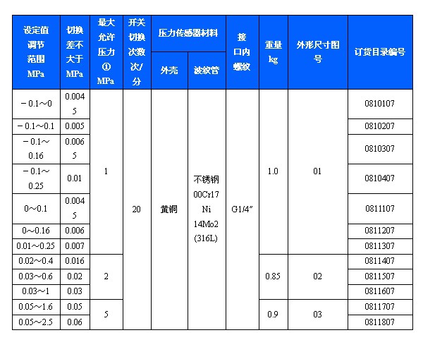 502/7DK压力开关可用于真空。有特殊要求的,可另行设计调节范围-0.1~6.3MPa。