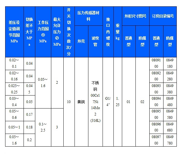 TLD-20压力开关采用波纹管式的传感器,可用于空气、气体、水蒸汽等中性气体和水、制冷剂、油等液体介质。TLD-20压力开关的设定值可调,调节范围0.02~1.6MPa,工作压力范围0.05~2.5MPa。